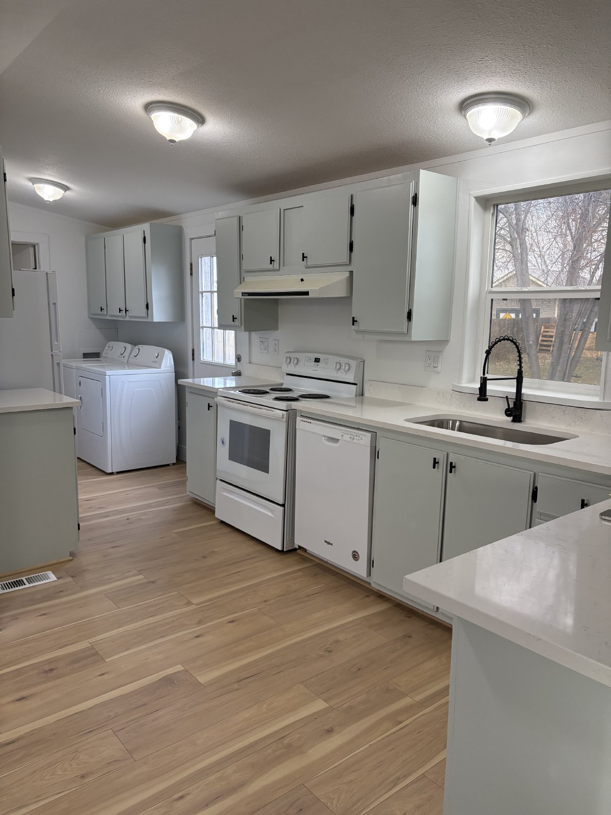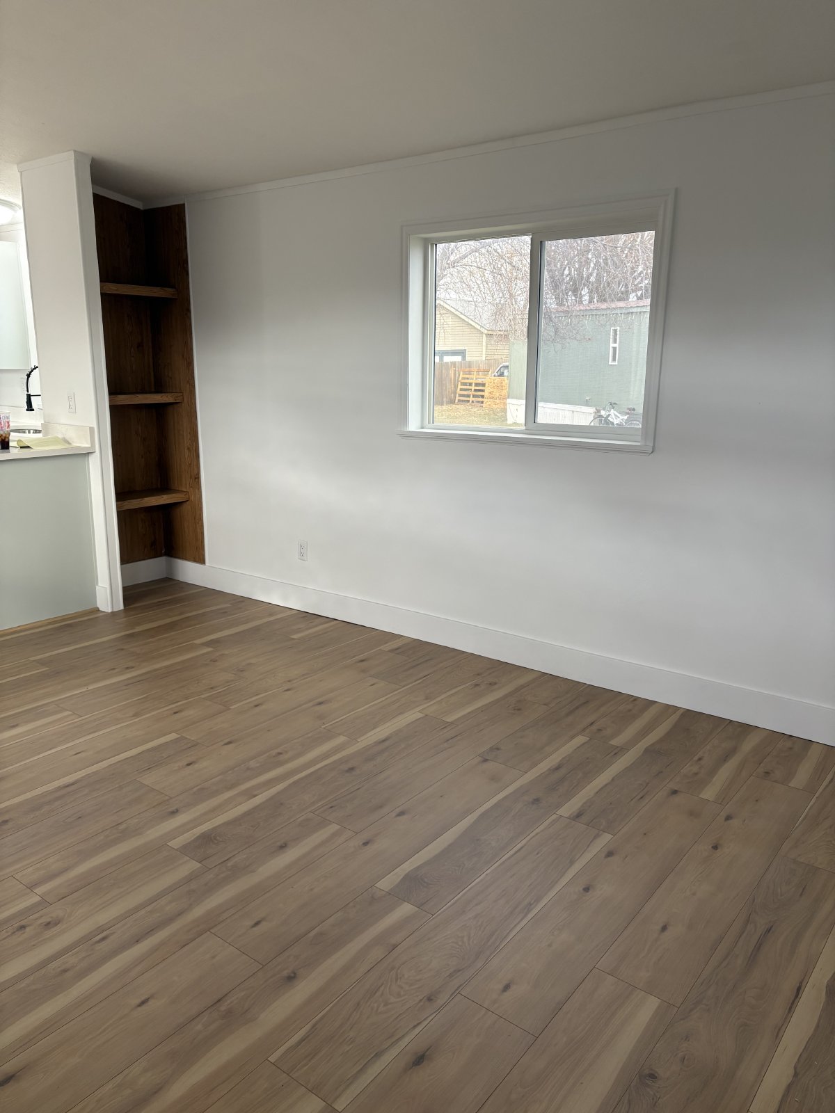 This Newly Updated property includes a Kitchen with a Fridge, Stove, Dishwasher, and Microwave, Pantry, Granite Countertops, Living Room with Built-in Shelving, NEW paint and hardwood flooring throughout, Washer/Dryer Included, Slab Parking